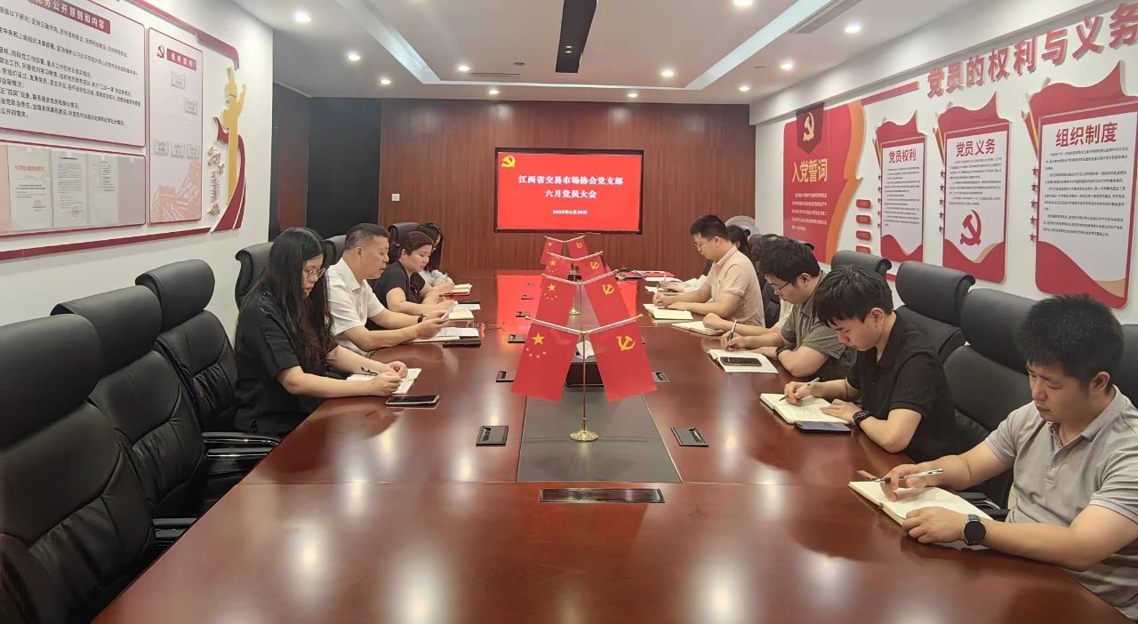 6月20日,江西省交易市場協(xié)會黨支部召開六月黨員大會。協(xié)會黨支部書記劉祖國主持會議,支部黨員、發(fā)展對象、入黨積極分子參加會議,入黨申請人列席會議。