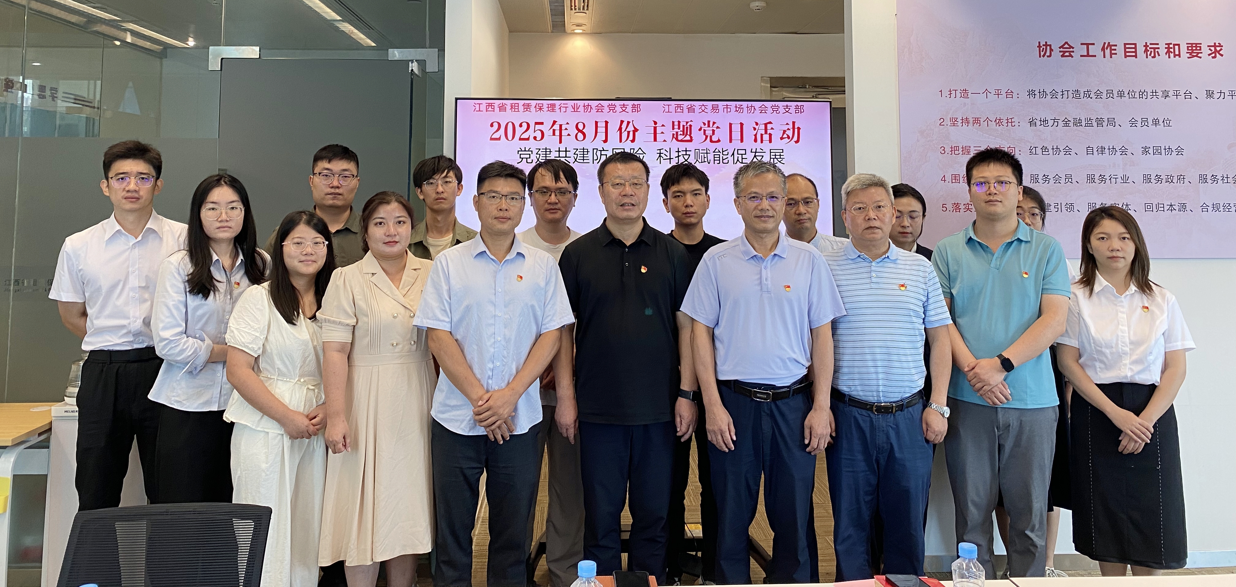 為進(jìn)一步增強(qiáng)江西省交易市場協(xié)會與江西省租賃保理行業(yè)協(xié)會的互動交流,加快推進(jìn)我省融資租賃機(jī)構(gòu)“贛金衛(wèi)士”監(jiān)管平臺業(yè)務(wù)系統(tǒng)上線工作,江西省交易市場協(xié)會黨支部與江西省租賃保理行業(yè)協(xié)會黨支部于8月14日聯(lián)合開展“黨建共建防風(fēng)險(xiǎn) 科技賦能促發(fā)展”主題黨日暨融資租賃行業(yè)交流座談會。