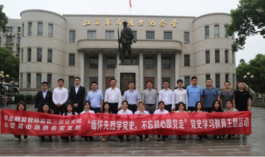 5月12日,省金融監(jiān)管局監(jiān)管三處黨支部與省交易市場(chǎng)協(xié)會(huì)黨支部赴革命烈士紀(jì)念堂聯(lián)合開(kāi)展“緬懷先烈學(xué)黨史,不忘初心跟黨走”黨史學(xué)習(xí)教育主題黨日活動(dòng),省金融監(jiān)管局黨組成員、副局長(zhǎng)徐鶴飛、省金融監(jiān)管局監(jiān)管三處黨支部、省交易市場(chǎng)協(xié)會(huì)黨支部、江西省聯(lián)交運(yùn)登記結(jié)算中心全體黨員及部分干部職工參加活動(dòng)。