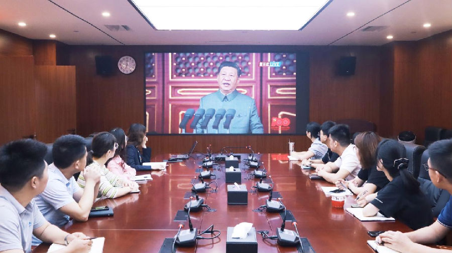 7月1日上午8時(shí),慶祝中國(guó)共產(chǎn)黨成立100周年大會(huì)在北京天安門(mén)廣場(chǎng)隆重舉行,中共中央總書(shū)記、國(guó)家主席、中央軍委主席習(xí)近平出席大會(huì)并發(fā)表重要講話。江西省聯(lián)交運(yùn)登記結(jié)算中心及江西省交易市場(chǎng)協(xié)會(huì)全體黨員干部員工集中觀看了大會(huì)盛況直播,感悟百年黨史,聆聽(tīng)書(shū)記教誨,奮進(jìn)新的征程。