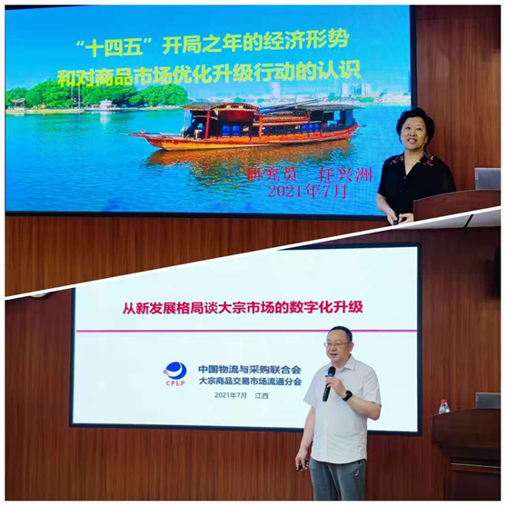 在演講交流環(huán)節(jié),任興洲以“‘十四五’開(kāi)局之年的經(jīng)濟(jì)形勢(shì)和對(duì)商品市場(chǎng)優(yōu)化升級(jí)行動(dòng)的認(rèn)識(shí)”為主旨進(jìn)行了演講。她在演講中對(duì)“十四五”開(kāi)局之年的國(guó)際國(guó)內(nèi)經(jīng)濟(jì)發(fā)展情況進(jìn)行了深入分析并分享了自己對(duì)經(jīng)濟(jì)形勢(shì)發(fā)展的預(yù)測(cè)和判斷,她認(rèn)為在此新形勢(shì)下商品市場(chǎng)優(yōu)化升級(jí)勢(shì)在必行,現(xiàn)代商品市場(chǎng)及流通體系建設(shè)作為構(gòu)建“以國(guó)內(nèi)大循環(huán)為主體、國(guó)內(nèi)國(guó)際雙循環(huán)相互促進(jìn)”的新發(fā)展格局的重要組成部分和內(nèi)容之一,正處于最好的發(fā)展時(shí)期,中國(guó)商場(chǎng)市場(chǎng)發(fā)展未來(lái)可期!周旭以“從新發(fā)展格局談大宗市場(chǎng)的數(shù)字化升級(jí)”為主旨進(jìn)行了演講,重點(diǎn)就如何加快構(gòu)建大宗市場(chǎng)新發(fā)展格局、緊抓大宗市場(chǎng)優(yōu)化升級(jí)著力點(diǎn)、聚力再譜大宗市場(chǎng)發(fā)展新輝煌進(jìn)行了全面深入的分析和介紹。他認(rèn)為,隨著《商品市場(chǎng)優(yōu)化升級(jí)專(zhuān)項(xiàng)行動(dòng)計(jì)劃(2021-2025)》發(fā)布和實(shí)施推進(jìn),目前商品市場(chǎng)也迎來(lái)了高質(zhì)量發(fā)展的機(jī)遇期和關(guān)鍵期,針對(duì)部分市場(chǎng)和企業(yè)在數(shù)字化、產(chǎn)業(yè)化轉(zhuǎn)型中“不會(huì)轉(zhuǎn)、不能轉(zhuǎn)、不敢轉(zhuǎn)”問(wèn)題,他通過(guò)對(duì)當(dāng)前市場(chǎng)相關(guān)成功經(jīng)驗(yàn)、案例和成熟做法的詳細(xì)講解和介紹,強(qiáng)調(diào)商品市場(chǎng)和企業(yè)要樹(shù)立起數(shù)字經(jīng)濟(jì)發(fā)展理念、掌握平臺(tái)經(jīng)濟(jì)創(chuàng)新方法、共同推進(jìn)和完善現(xiàn)代供應(yīng)鏈模式創(chuàng)新發(fā)展。