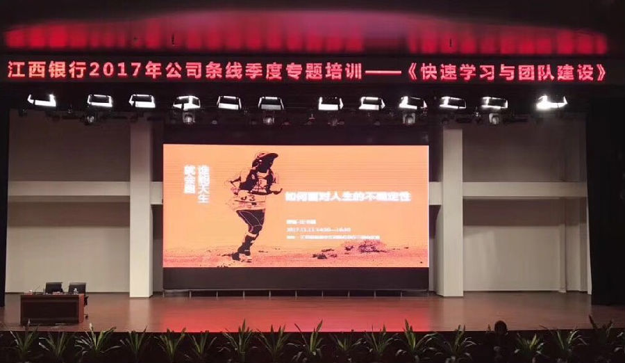 2017年11月11日,江西聯(lián)交運(yùn)董事長(zhǎng)汪書(shū)福受江西銀行總行邀請(qǐng),為江西銀行全行的公司條線管理層及員工作了一場(chǎng)以《快速學(xué)習(xí)與團(tuán)隊(duì)建設(shè)》為主題的講座。本次講座現(xiàn)場(chǎng)300余人參加,各支行工作人員500余人通過(guò)視頻學(xué)習(xí)。