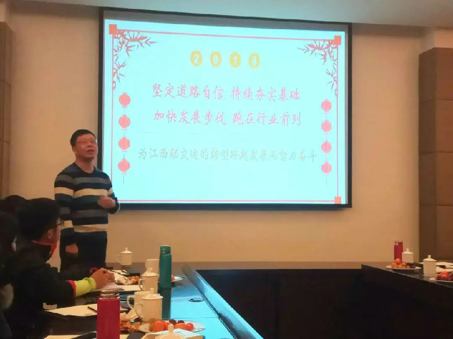 接下來(lái)劉祖國(guó)總經(jīng)理以“堅(jiān)定道路自信 持續(xù)夯實(shí)基礎(chǔ) 加快發(fā)展步伐 跑在行業(yè)前列 為江西聯(lián)交運(yùn)的轉(zhuǎn)型跨越發(fā)展而努力奮斗”為主題做總結(jié)講話(huà)。對(duì)公司2017年各項(xiàng)工作進(jìn)行了回顧和總結(jié),并對(duì)2018年工作思路、措施、目標(biāo)等進(jìn)行了全面的闡述。