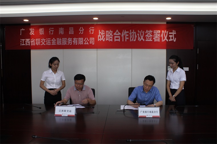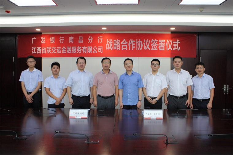 2016年8月10日,江西省聯(lián)交運(yùn)金融服務(wù)有限公司(以下簡稱“江西聯(lián)交運(yùn)”)與廣發(fā)銀行股份有限公司南昌分行(以下簡稱“廣發(fā)銀行南昌分行”)舉行戰(zhàn)略合作協(xié)議簽約儀式。廣發(fā)銀行南昌分行副行長趙峰林、公司部總經(jīng)理黃佳歡、營業(yè)部總經(jīng)理王海及江西聯(lián)交運(yùn)總經(jīng)理劉祖國等出席儀式。