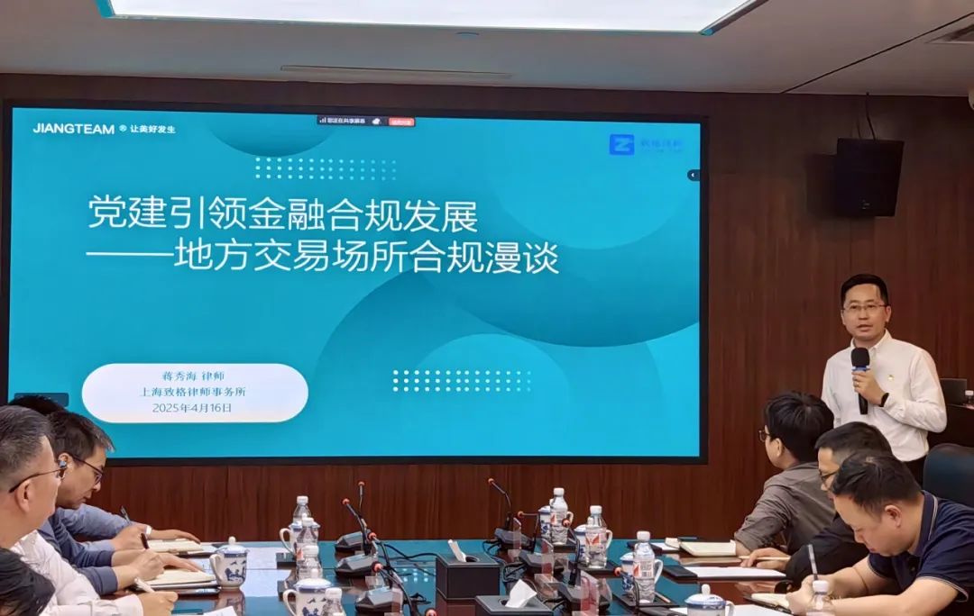 隨后,蔣秀海律師以《黨建引領(lǐng)金融合規(guī)發(fā)展——地方交易場所合規(guī)漫談》為題進(jìn)行專題分享交流,對地方交易場所行業(yè)相關(guān)法律法規(guī)和監(jiān)管政策進(jìn)行專業(yè)透析解讀,對地方交易場所發(fā)展定位和方向提出見解與思考,重點對地方交易場所如何加強(qiáng)合規(guī)風(fēng)控建設(shè)以進(jìn)一步筑牢安全穩(wěn)定經(jīng)營發(fā)展防線分享了諸多具有較強(qiáng)針對性和實用性的意見和建議。在認(rèn)真聆聽蔣秀海律師分享后,線上、線下參會單位通過現(xiàn)場提問及線上咨詢等方式積極參與交流研討,蔣秀海律師一一進(jìn)行了專業(yè)詳細(xì)的解答。參會代表紛紛表示,本次會議組織工作嚴(yán)謹(jǐn)周密,黨建學(xué)習(xí)和交流研討內(nèi)容兼具專業(yè)深度與實踐價值,會議不僅有效拓展了行業(yè)視野、創(chuàng)新了發(fā)展思維,更為交易場所搭建了高規(guī)格的交流合作平臺。