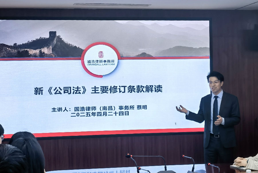 4月24日,公司舉辦新《公司法》主要修訂條款解讀專題培訓(xùn)會議,邀請到國浩律師(南昌)事務(wù)所黨支部書記、管理合伙人蔡明律師進(jìn)行專題授課,公司董事、總經(jīng)理劉祖國出席會議。
