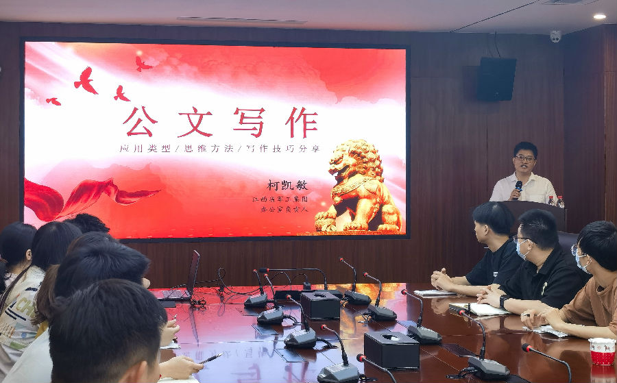為進(jìn)一步提高公司全體員工對(duì)公文寫(xiě)作的認(rèn)識(shí),促進(jìn)公司辦文水平提升,6月13日,業(yè)務(wù)管理部作為月度輪值部門(mén)舉辦了6月學(xué)習(xí)培訓(xùn)會(huì)——公文寫(xiě)作。本次學(xué)習(xí)培訓(xùn)會(huì)特別邀請(qǐng)到江西省軍工控股集團(tuán)辦公室負(fù)責(zé)人柯凱敏現(xiàn)場(chǎng)授課,公司總經(jīng)理劉祖國(guó)出席并講話。