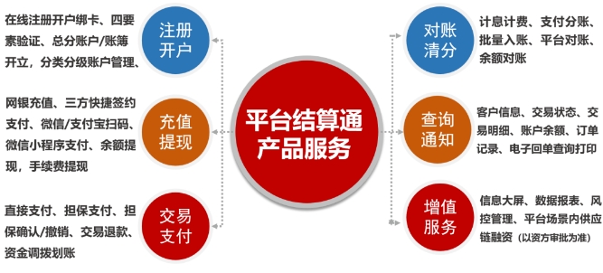 平臺(tái)結(jié)算通是公司沉心運(yùn)營(yíng)8年多來(lái),不斷優(yōu)化升級(jí)集中登記結(jié)算管理服務(wù)的各項(xiàng)功能體驗(yàn)和各類場(chǎng)景服務(wù)輸出,重點(diǎn)建設(shè)打造的為地方交易場(chǎng)所及多類型垂直行業(yè)/業(yè)務(wù)場(chǎng)景提供全鏈路交易資金“收+管+付”的綜合服務(wù)解決方案。平臺(tái)結(jié)算通可滿足地方交易場(chǎng)所及各類B2B、B2C交易平臺(tái)的資金存管、實(shí)時(shí)結(jié)算、賬戶管理等共性需求,包括但不限于提供總分賬簿開(kāi)立、多渠道充值提現(xiàn)、擔(dān)保交易支付、批量對(duì)賬清分、回單打印查詢、供應(yīng)鏈金融賦能等一體化資金結(jié)算和賬戶管理服務(wù)。