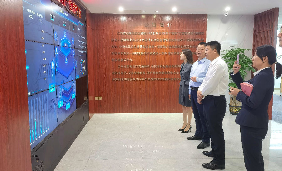 郭朝暉一行首先觀摩了“贛金衛(wèi)士”監(jiān)管信息展示大屏,詳細(xì)了解公司相關(guān)輔助監(jiān)管平臺(tái)建設(shè)成果,并對(duì)公司在輔助監(jiān)管等方面的探索實(shí)踐工作及良好成效表示高度肯定。
