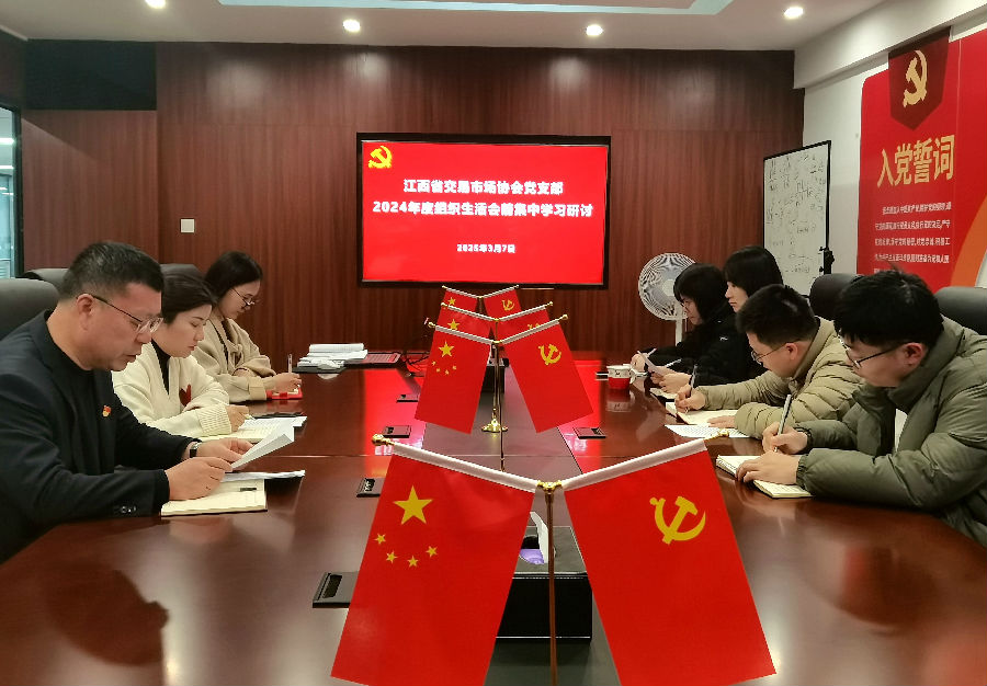 為深入學(xué)習(xí)貫徹習(xí)近平新時(shí)代中國(guó)特色社會(huì)主義思想,確保高質(zhì)量開(kāi)好2024年度基層黨支部組織生活會(huì)。3月7日,江西省交易市場(chǎng)協(xié)會(huì)黨支部開(kāi)展2024年度組織生活會(huì)會(huì)前集中學(xué)習(xí)研討。協(xié)會(huì)黨支部書(shū)記劉祖國(guó)同志主持會(huì)議,支部全體黨員、發(fā)展對(duì)象、入黨積極分子參加會(huì)議。