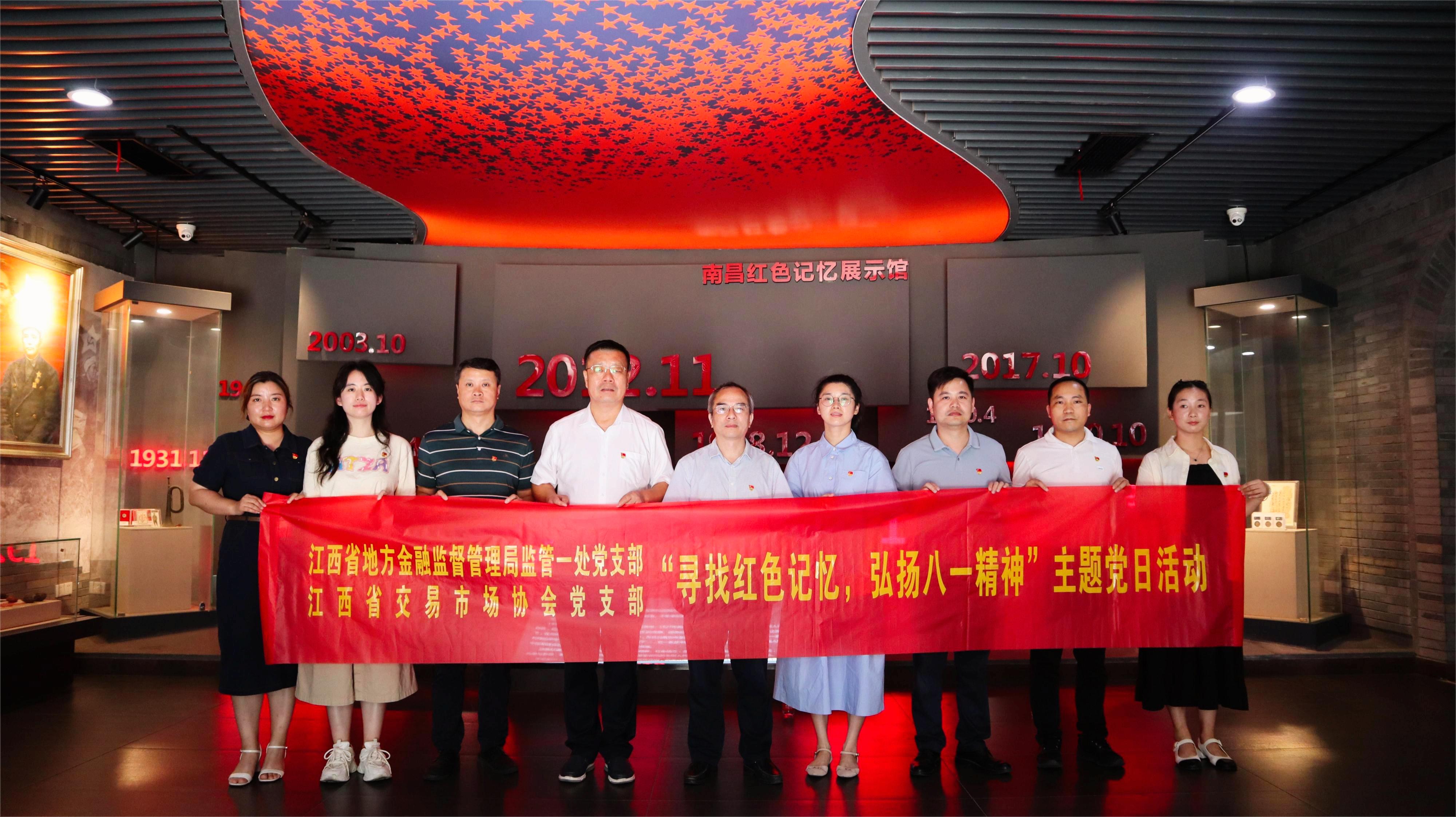 為熱烈慶祝中國(guó)人民解放軍建軍96周年,繼承弘揚(yáng)紅色革命基因,8月2日,江西省交易市場(chǎng)協(xié)會(huì)黨支部與省金融局監(jiān)管一處黨支部聯(lián)合開(kāi)展“尋找紅色記憶 弘揚(yáng)八一精神”主題黨日活動(dòng)。省金融局監(jiān)管一處黨支部書(shū)記李四旺同志、協(xié)會(huì)執(zhí)行會(huì)長(zhǎng)劉祖國(guó)同志參加活動(dòng)。